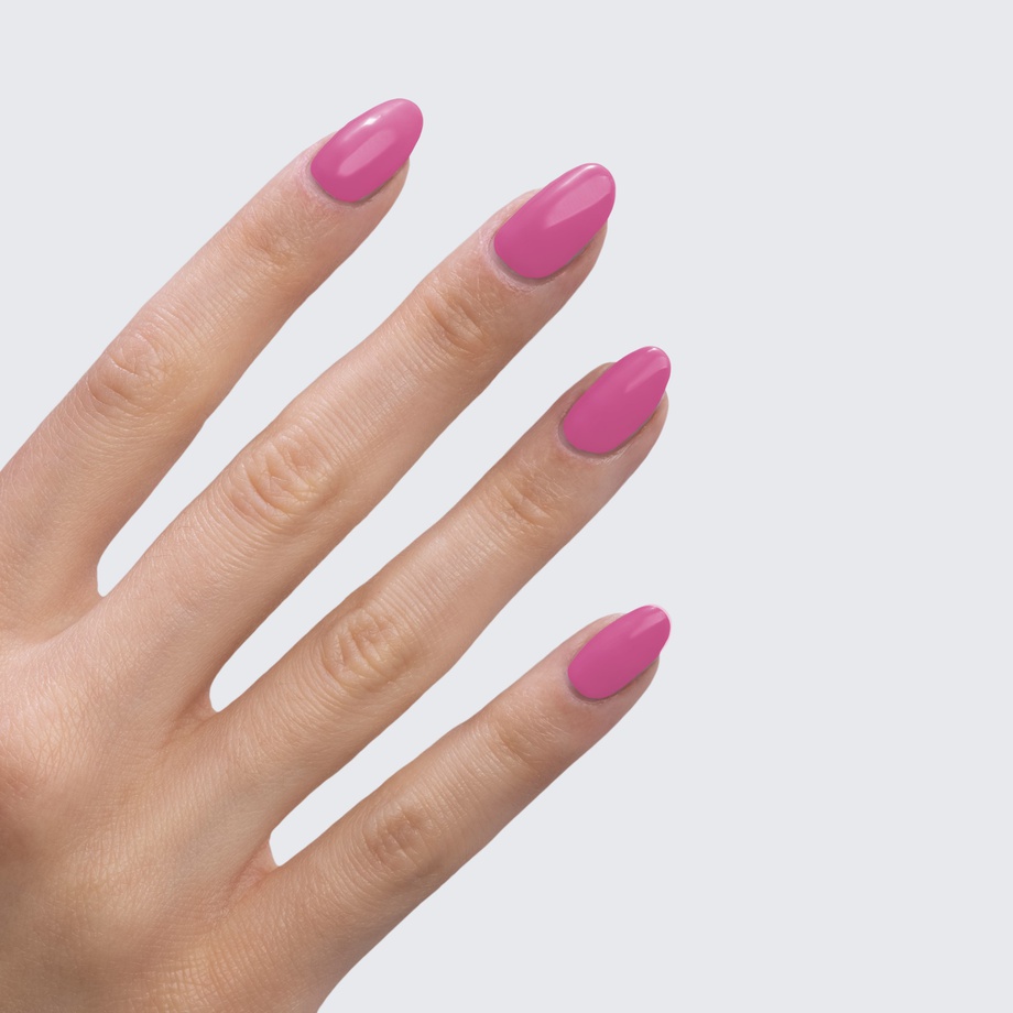 Bubble-gum pink. Muted. Opaque. Warm undertone. Light.